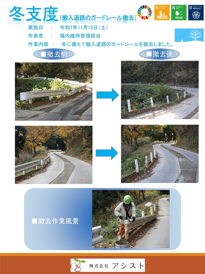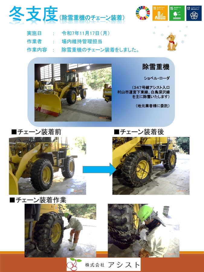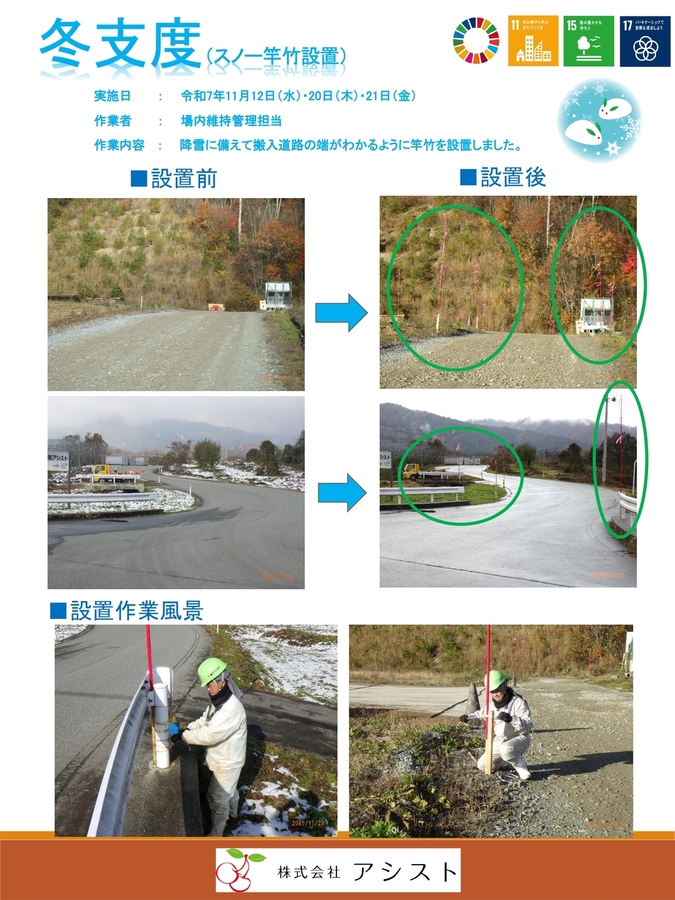 今シーズンも搬入道路(市道白鳥深沢線)と場内外除雪の準備完了です!